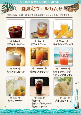 メンバーズカードでポイントを集めると、館内のおすきな飲食メニューや休憩室料半額、宿泊室料半額やディズニーチケットと交換することが出来ます。是非ポイントを集めてゲットしてください!。100円毎に1ポイント(有効期限1年)